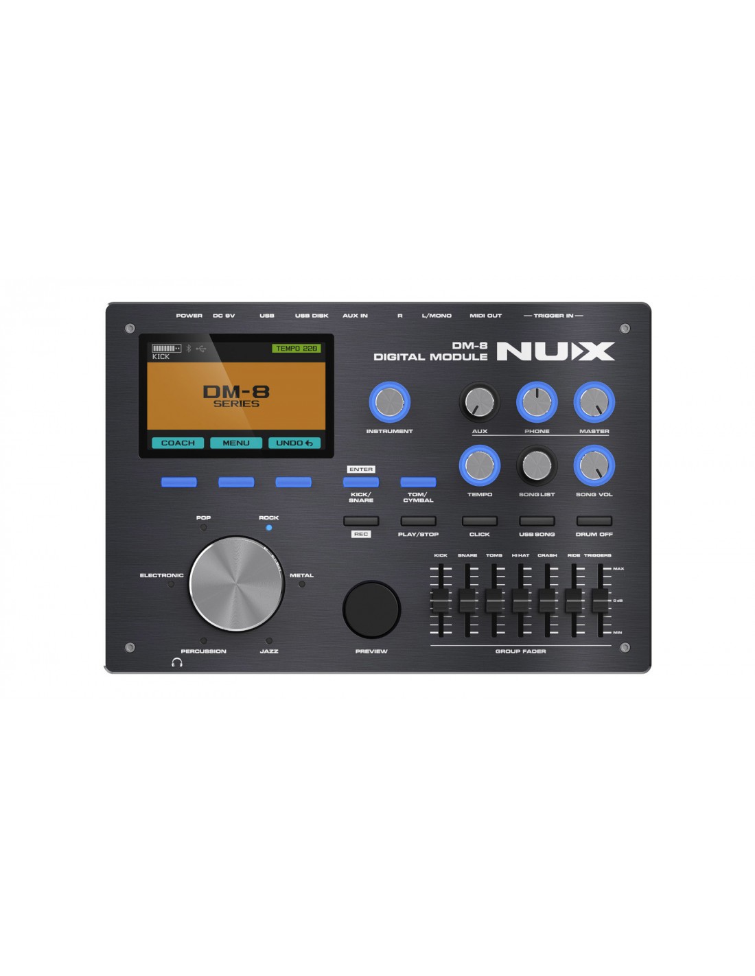 La batterie DM-8 est le nouveau fer de lance de chez NUX. Doté de nouvelles technologies innovantes, cette batterie électronique offre une sensation de jeu proche d’une batterie acoustique et vous permet ainsi d’avoir un jeu expressif et réaliste. La DM-8 embarque un rack qui en plus d’être robuste est également très esthétique, parfait pour vos concerts !