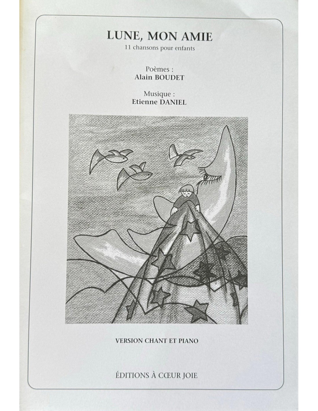 Lune mon amie, recueil riche et original de poèmes d’Alain Boudet, mis en musique par Étienne Daniel pour enfants à partir de 6 ans :