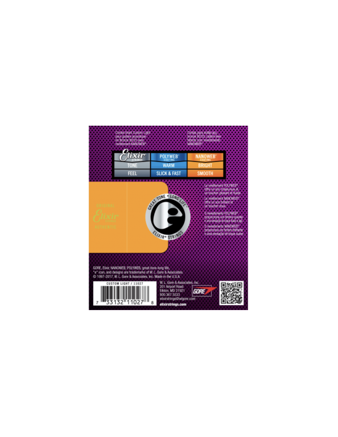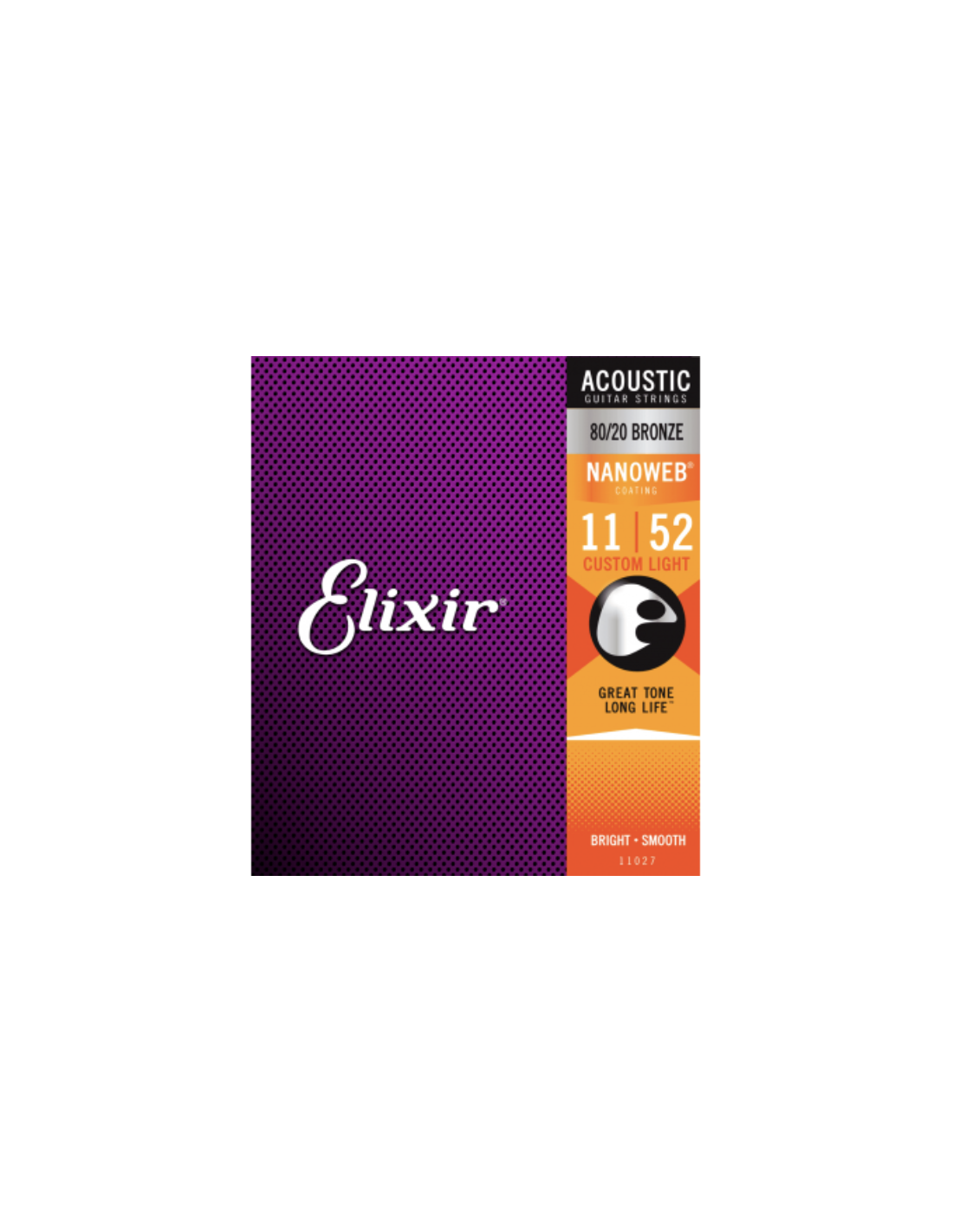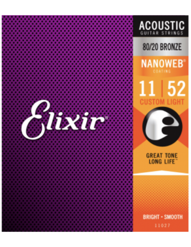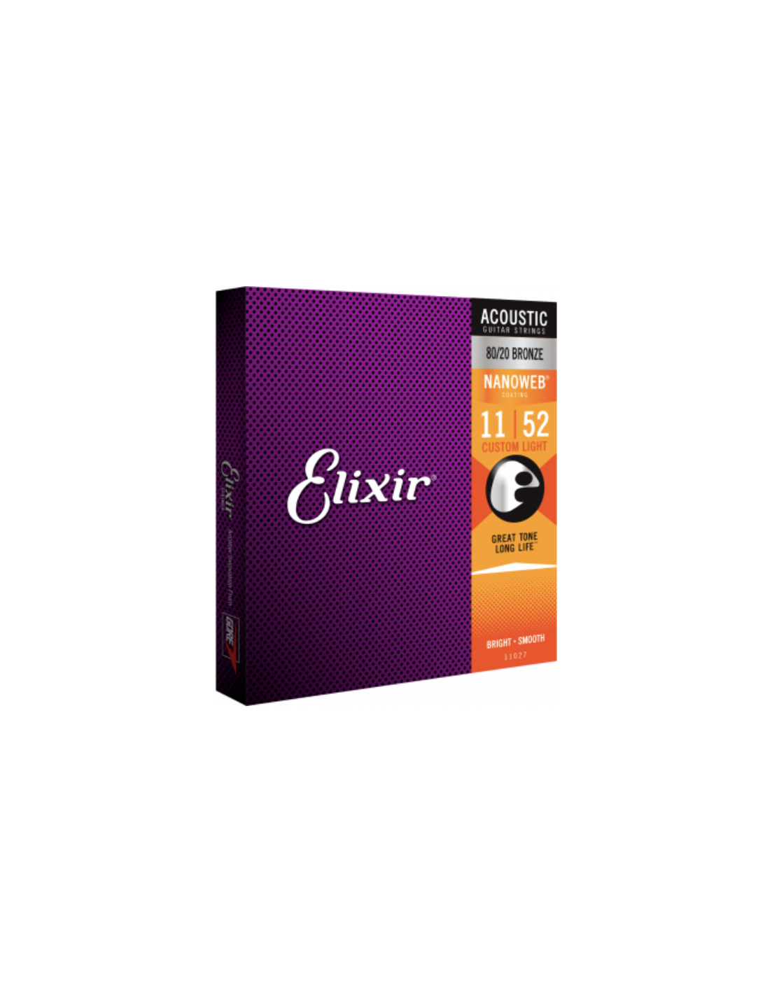 Elixir 11027 NanoWeb Custom Light 11-52, jeu de cordes pour guitare folk.