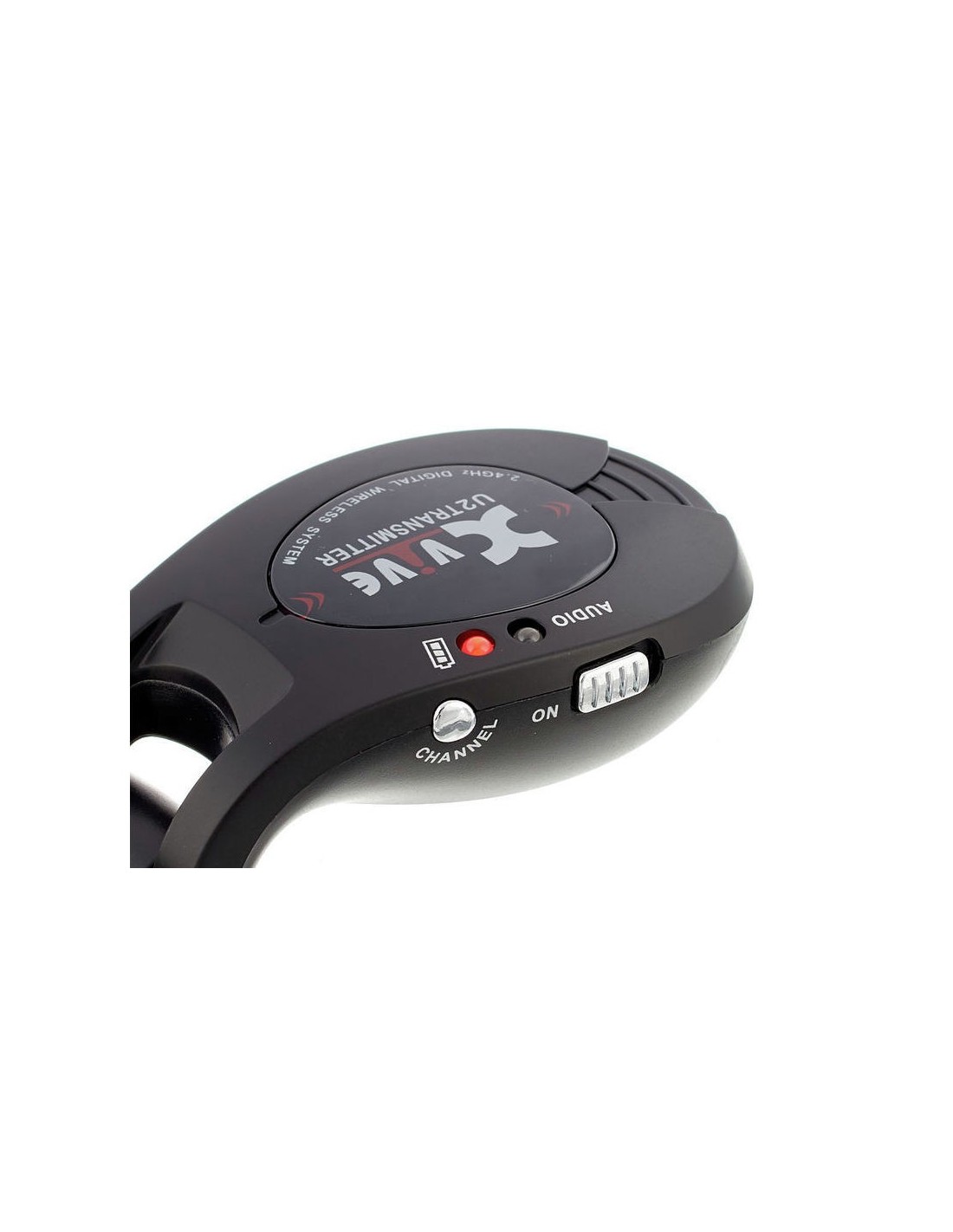 Système HF sans fil pour guitare et basse passive. 4 canaux, se charge par USB, autonomie de 5 heures et portée de 30 mètres.