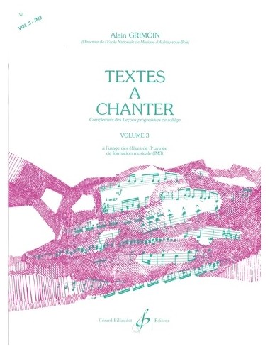 Textes à Chanter Volume 3, complément des Leçons progressives de solfège, à l'usage des élèves de 3ème année de formation musicale (IM3).