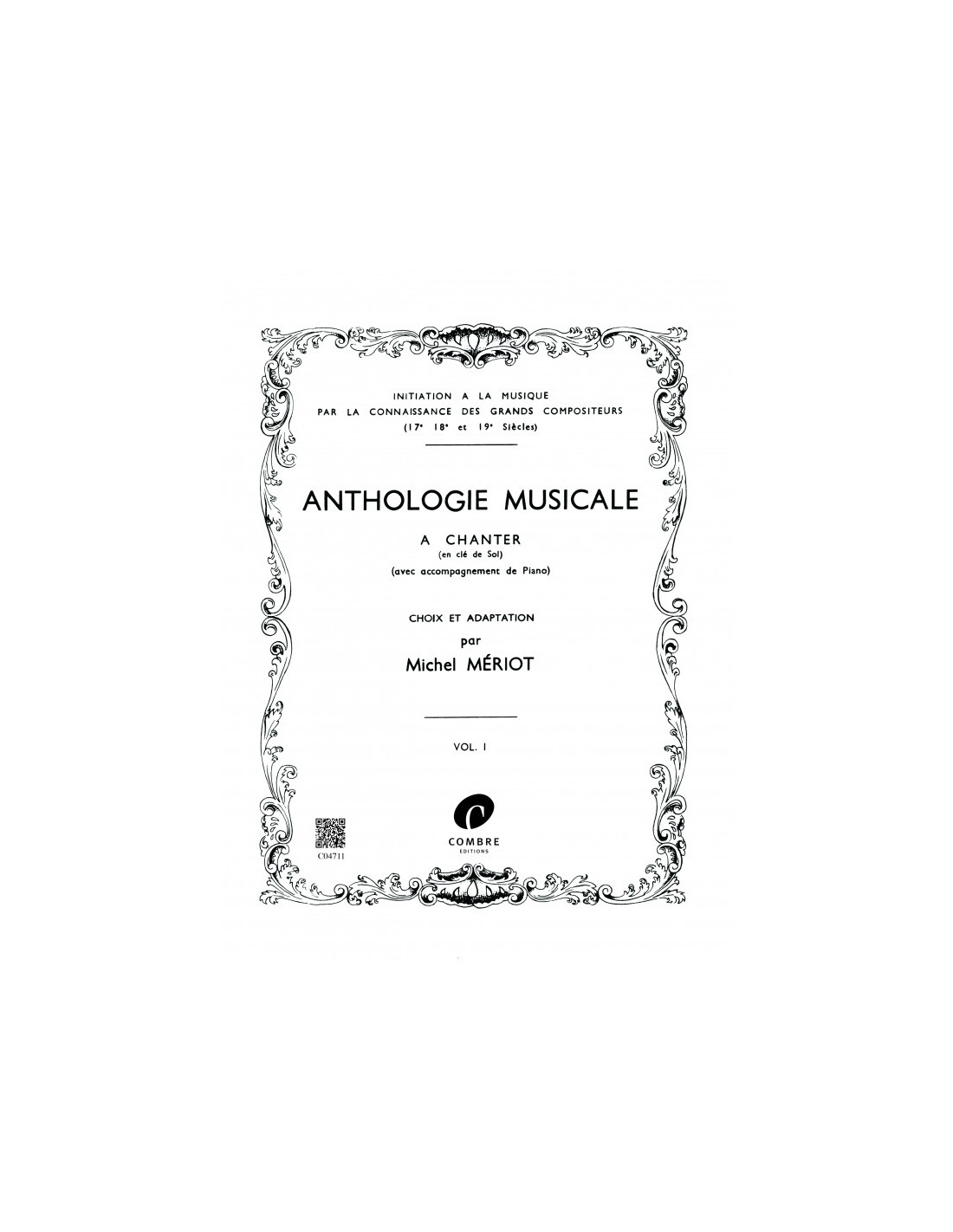 Michel Mériot, Anthologie Musicale volume 1 en clé de Sol avec accompagnement de piano - édition Combre