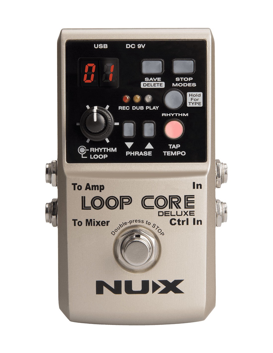 De nombreux loopers sont disponibles sur le marché, proposant des interfaces très différentes les unes des autres, à des prix très variables. La Loopcore Deluxe est une version améliorée du Nux Loopecore. En plus de sa fonction looper capable d'enregistrer jusqu'à 8 heures de jeu sur sa mémoire intégrée, elle intègre également une boîte à rythme très complète avec des sons de batterie très réalistes. Cette boîte à rythme, pilotable via un tap tempo, embarque 20 styles de musique différents, déclinables en 4/4 ou en 3/4 pour coller à tous vos projets créatifs.