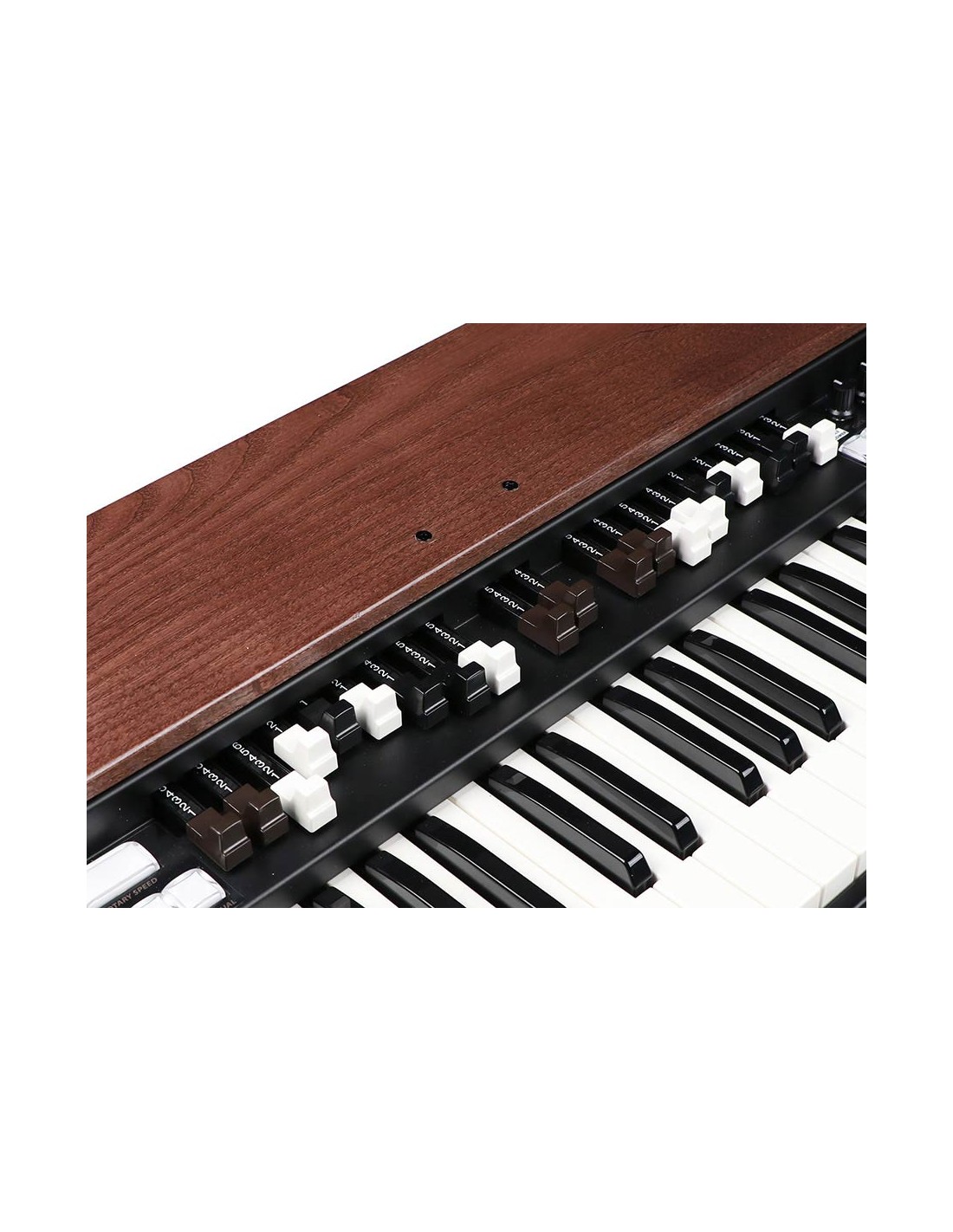 - Boutons de volume, Drive, Reverb, Keyclick, Diaphonie, Volume de percussion, Balance, Distance, Bass, Middle, Treble