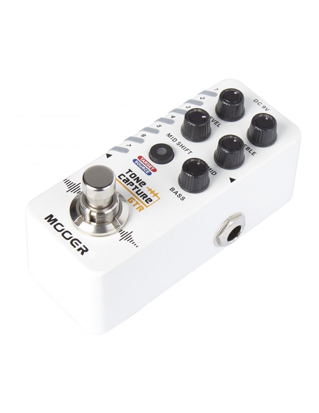 Pédale Mooer TONE CAPTURE, EQ pour guitares, permet de capture le son d'une guitare cible, boîtier métal, true/buffered bypass, blanc.